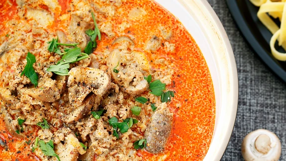 Lisa tükeldatud pommu ja puhastatud-poolitatud šampinjonid, maitsesta vähese soolaga ja kuumuta veel paar minutit.