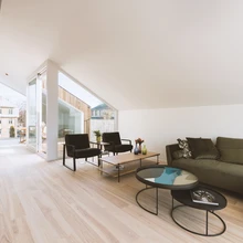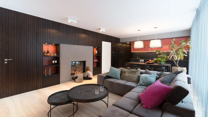 Avarus ja valgusküllasus olid peamised märksõnad, mida Annika Lill mõlema korteri interjööri loomisel silmas pidas. Majades on maaküte ja põrandakütte paigaldamine tähendas lisaks soojadele põrandatele ka võimalus teha põrandani ulatuvaid aknaid. Nii on korteris suured aknad, mille juurde jalutamist ja välja vaatamist ei takista miski, soojust ja veelgi valgust lisav kamin, üsnagi palju sisseehitatud mööblit – oluline oli luua hea atmosfäär ja lasta esile tõusta maja kaunil arhitektuuril.