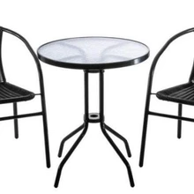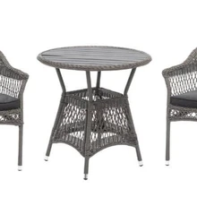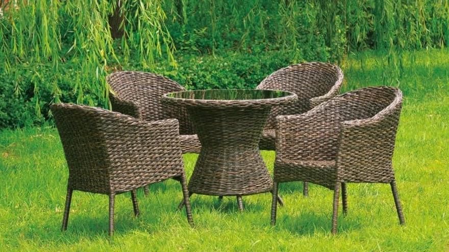 Punutistega kaetud mööbel, kaarjad seljatoed ning klaaspaneeliga laud—selline komplekt mõjub romantiliselt kuid maitsekalt. Sobib suurepäraselt ka majast eemale, eriti puude ning lillepeenarde lähedusse. Mööbli karkass on vastupidavast metallist, ka seda kattev plastpunutis on ilmastikukindel.