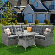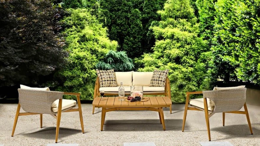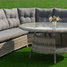 Et suurema seltskonnaga aeda mõnusalt puhkama mahuks, võiks aias olla nurgadiivan ja sellega sobiv laud. Selline komplekt sobib hästi terrassile—nii saab suviti hommikusööki õues nautida, ning alati on olemas koht, kus ilusa ilmaga raamatut lugeda. Kuna mööbel on kaetud ilmastikukindla polürotangiga, võib komplekti paigutada ka aeda. Nurgadiivani asemel võib aeda paigutada ka omavahel kokkusobiva diivani ning mugavad tugitoolid—selline lahendus mahub ära ka väiksemale terrassile.