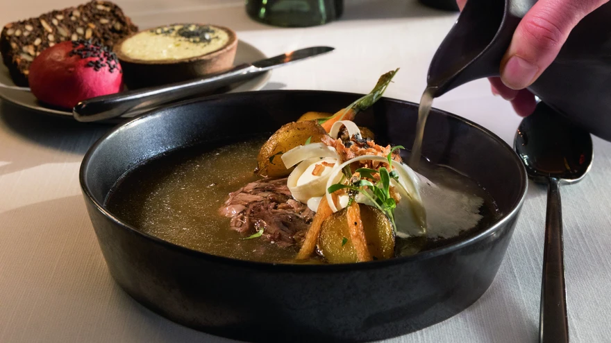 Vahetult enne söömist vala süldile kuum leem. | foto: Toomas TuulLaulasmaa Spa restorani Wicca peakokk Angelica Udeküll pakub sedakorda välja põneva roa jõululauale.