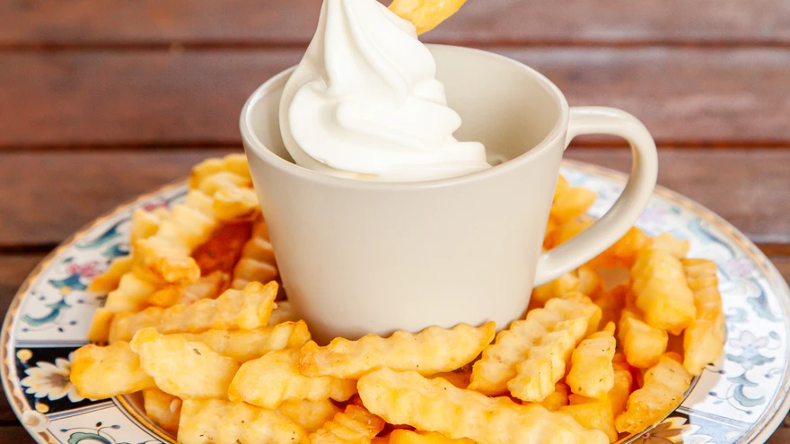 Arvatakse, et selles maitsekombinatsioonis saab süüdistada kiirtoidukohtasid, kus inimesed tellisid friikartuleid ja koorejäätist ning viimase kreemjas tekstuur lihtsalt mõjus nii kutsuvalt, et inimesed hakkasid naljaga pooleks kartuleid sellesse kastma. Järgmisel hetkel proovisid koorese ja magusa ning kuuma ja soolase kooslust juba inimesed üle maailma.