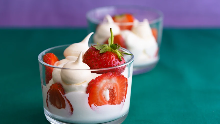 Suvedessert briti köögist. Maasikad vahukoore ja beseeküpsistega