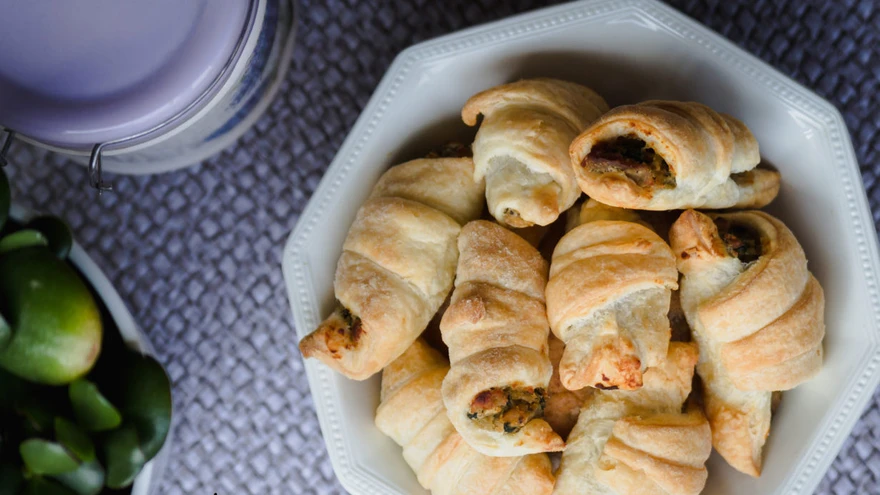 Puista köögipinnale veidi jahu ja aseta lehttaigen sinna peale. Lõika välja umbes 4 cm laiused ribad ja laota segu ribade peale. Rulli ribad kokku. Pintselda seenerulle oliiviõliga ja pane need 180°C juures 25 minutiks ahju, kuni need on kuldpruunid. Naudi kohe!