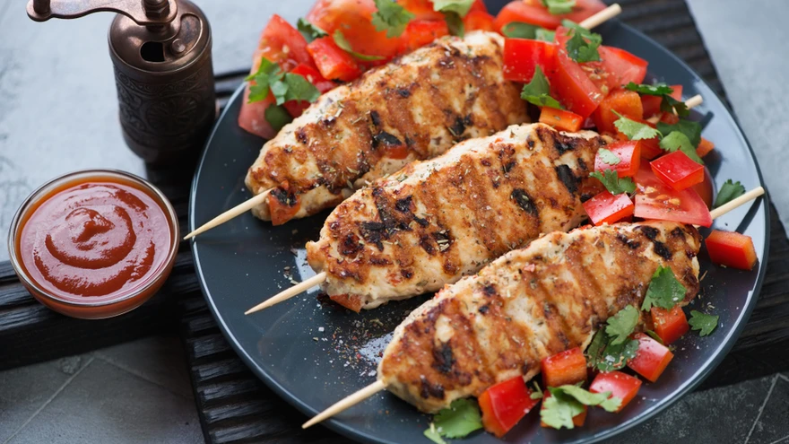 Kanavarraste juurde serveeri köögivilja salatit. | foto: ShutterstockVali grillimenüüsse traditsioonilise šašlõki kõrvale midagi eksootilisemat! Taipärased kanavardad maitsevad põnevalt ja kuumalt.