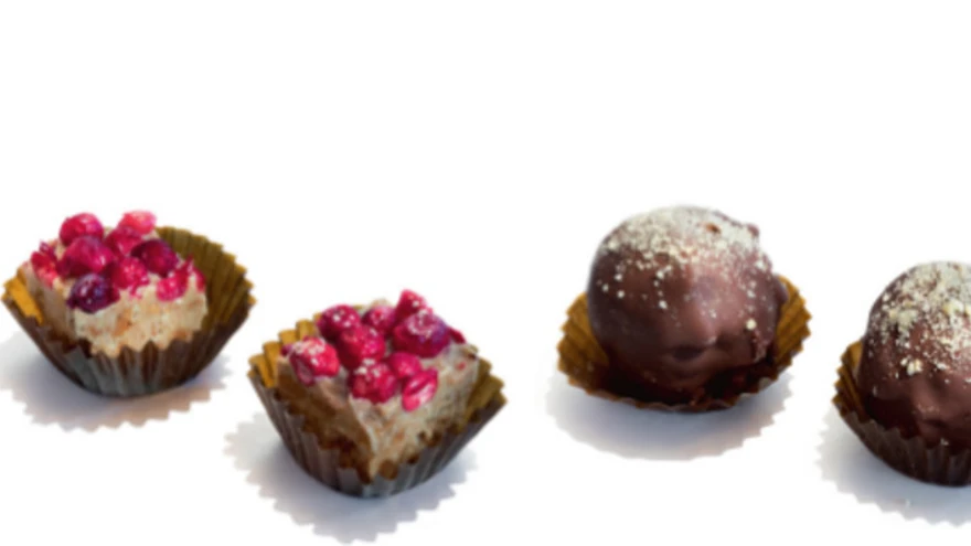 4. Sulata vesivannil tume šokolaad ning kasta kuulid sellesse. Peale puista mingit puistet või pane tükike kuivatatud aprikoosi. Siis aseta kommid külmkappi tahenema.
