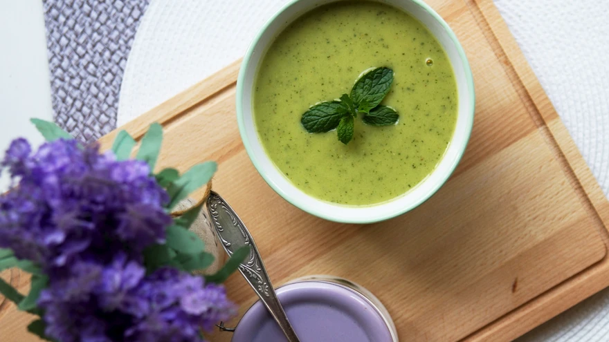 Lisa ¾ värsketest või külmutatud hernestest, hakitud mündilehed ja ¾ aedviljapuljongist. Kata pott kaanega ning keeda keskmisel tulel 10 minutit.