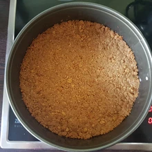 Põhja jaoks tükelda küpsised köögikombaini kannu ja töötle puruks. Lisa küpsisepurule kardemon ja sulatatud kookosõli, mikserda veel veidi. Pane segu ümmargusse (läbimõõduga 24-26 cm) koogivormi põhja, mis on eelnevalt küpsetuspaberiga kaetud ning määri rõnga seinad üle toiduõliga.