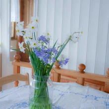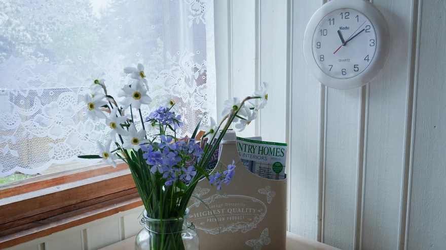 Valgeks värvitud laudis toob tuppa valgust ja laseb sel suuremana paista. Esiplaanil oma aia lilled lihtsas vaasis (u. 4 EUR, Koduextra), ajakirjade tasku samuti Koduextrast (14 EUR | foto: erakoguKõigest kahe päevaga saab kodus nii mõndagi muuta, tõestas Remondihullu blogis kirjeldatud nõukasuvila ümbersünd põhjamaiseks maakoduks.