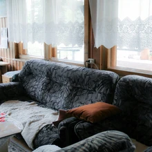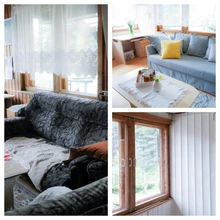 Tublid abilised käärisid käised – koos pererahvaga otsustati, et puitlaudis saab heledaks. Heledaks värvitud iidne seinalaudis on ruumikujunduses praegu tõeline hitt – näiteks USAs kasutatakse seda väga palju. Kui lagi sai valgeks, siis seinatooniks valis pererahvas Caparoli 25 Off White’i – kerge tooniga nn. puusepavalge.Vahetamisele läks ka pehme mööbel – uus, põhjamaisesse maakoju sobivaks diivaniks valiti hall Ikea Holmsund lahtikäiv diivanvoodi, tugitool pärineb samuti Ikea valikust. Ikea mööbli suureks plussiks on asjaolu, et kõik katted on vahetatavad, kergelt eemaldatavad ning diivanvoodi sisaldab ka kaht mahukat pesukasti. Aksessuaaridele (pärit Ikeast, HM Home, Home4You, Koduextra, Jysk ja Pier kaupluste valikust) ei kulunud palju, kuid just väikesed asjad aitavad ruumile täiesti uue hingamise anda.