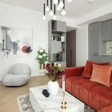 Interjööri on pikitud kaunid nüüdisaegsed ümara vormiga mööbliesemed ja valgustid, mis kõlavad kokku põhjamaiselt selgeks ja otstarbekaks koduks. | foto: Katrin UusojaMerko rajatav Uus-Veerenni kvartal on üks suurimaid terviklikke elamuarendusi Tallinna linnasüdame vahetus läheduses. See haarab ühtekokku pooltsada uut korterelamut koos maju ümbritsevate sisehoovide ja haljasaladega. Esimese ja teise etapi majad on valmis ning uusi omanikke ootavad viimased vabad korterid. Kerkimas on järgmised elamud, mis valmivad 2021. aastal.