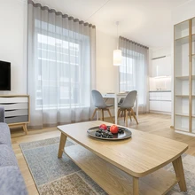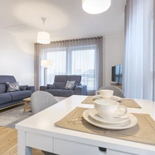 KUU arhitektide projekteeritud Mardi 9 korterelamus on jalgratastele eraldi valvega parklad, garaažist pääs otse liftiga erinevatele korrustele ning ruumikad terrassid õhtupäikese poole, kus koos pere ja sõpradega koosviibimist nautida. Ümbritsevasse keskkonda sobiva näidiskorteri sisekujundaja Deizi Kahar lähtus rahulikust, põhjamaisest joonest. "Niisugune korter sobib igale maitsele, kuna seda on lihtne täiendada erksamate nüanssidega," selgitas ta. Korteri suured aknad lubavad elamisse piisavalt loomulikku valgust, heledad toonid lisavad avarust.