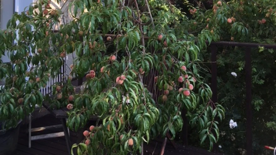 Tallinnas Kristiine linnaosas kasvav virsikupuu. | foto: Merike PuskarTallinnas Kristiine linnaosas rõõmustab viljadest lookas virsikupuu perenaist Merike Puskarit. Eestis saab vägagi edukalt kasvatada neid lõunapoolt pärit puuvilju.