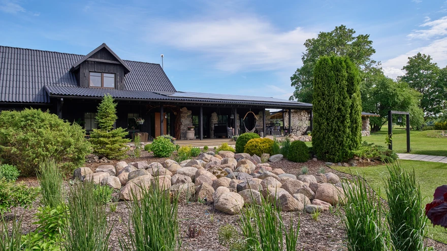 Konkursi „Kodu kauniks 2024” finalist. | foto: Meeli TulikTalukoht muutus uute omanike käe all tundmatuseni: nüüd laiub siin minimalistliku kujundusega moodne aiamaastik ja tegutseb ka hubane kodurestoran.