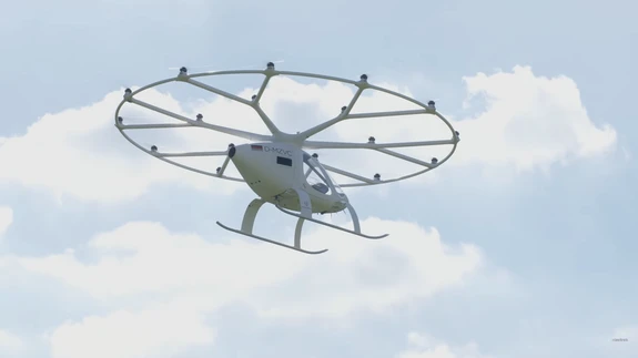 Hiiglaslikku drooni meenutav lendav takso Volocopter tegi oma esimese ametliku lennu Euroopas, seda Stuttgartis Mercedese muuseumi kohal....