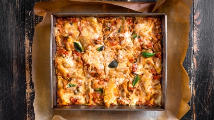 Mõnusa toorjuustutainaga lahtine pirukas.