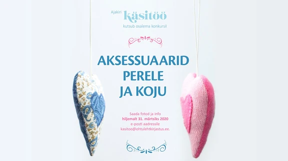 Ootame konkursile väiksemaid ja suuremaid aksessuaare, mis on valminud nii lastele, naistele kui ka meestele, aga ka lihtsaid praktilisi esemeid koju, autosse, aeda....