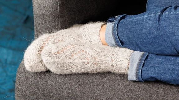 Pitsilise mustriga alpakavillast kootud sokkidel on mugav madal serv. Sellised jalasoojendajad on ka talvisel ajal poolsaabaste ja vabaajajalatsite jaoks nagu loodud....