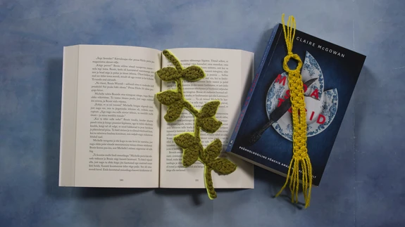 Kui muidu oleme harjunud paberist järjehoidjatega, siis seekord teeme raamatule väärilise kaaslase hoopis lõngast. Pehmest puuvillasest lõngast heegeldame oksakese ja maavillasest punume makrameesõlme...