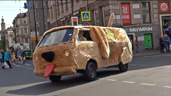 Peterburis ilmus linnatänavatele väga omapärane sõiduk: selleks on suurt koera meenutav auto....