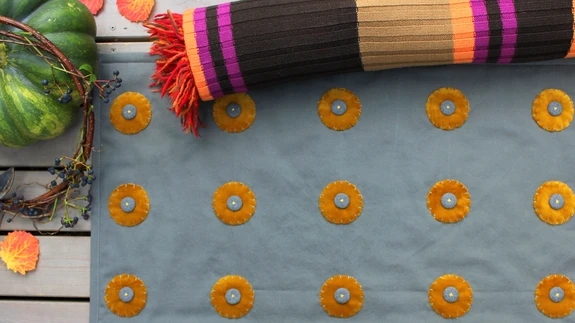 Õmble ukse ette väike vaibake, mis tervitab tulijat rõõmsate kollaste sõõridega. Toruks õmmeldud sallist vutlaris on aga kokku keeratud pleed nii tihedalt koos, et toimib tõhusa tuuletõkkepadjana ukse...